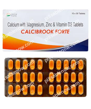 Dosage is determined based on age, dietary intake, and medical condition. Calcibrook Forte is usually taken orally with or after meals to improve absorption. Tablets should be swallowed whole with water. Follow the dosage recommended by a healthcare professional.